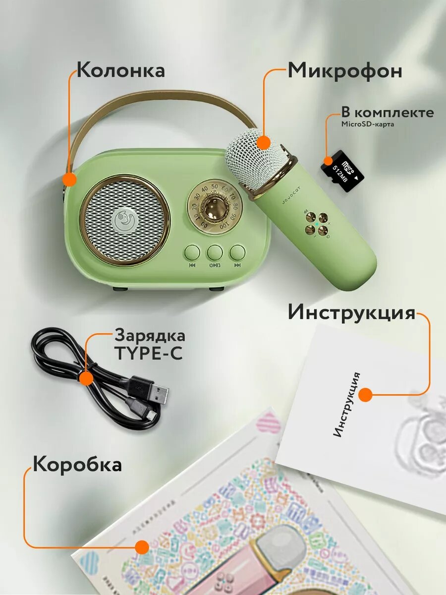 Детский микрофон JOJOCAT с колонкой Bluetooth для караоке, зеленый цвет информация:
