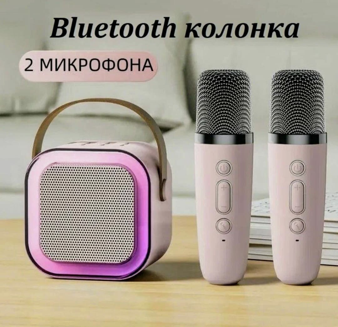 Детская караоке система/Мини караоке Bluetooth колонка с 2 микрофонами (розовый) информация: