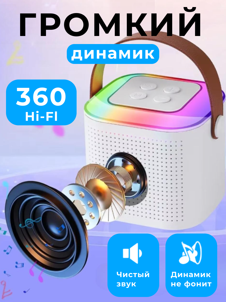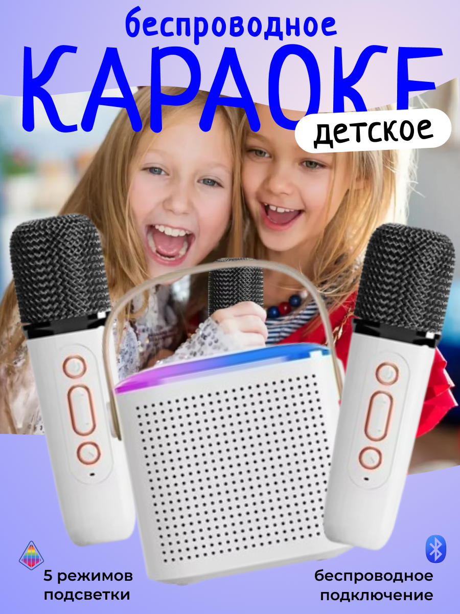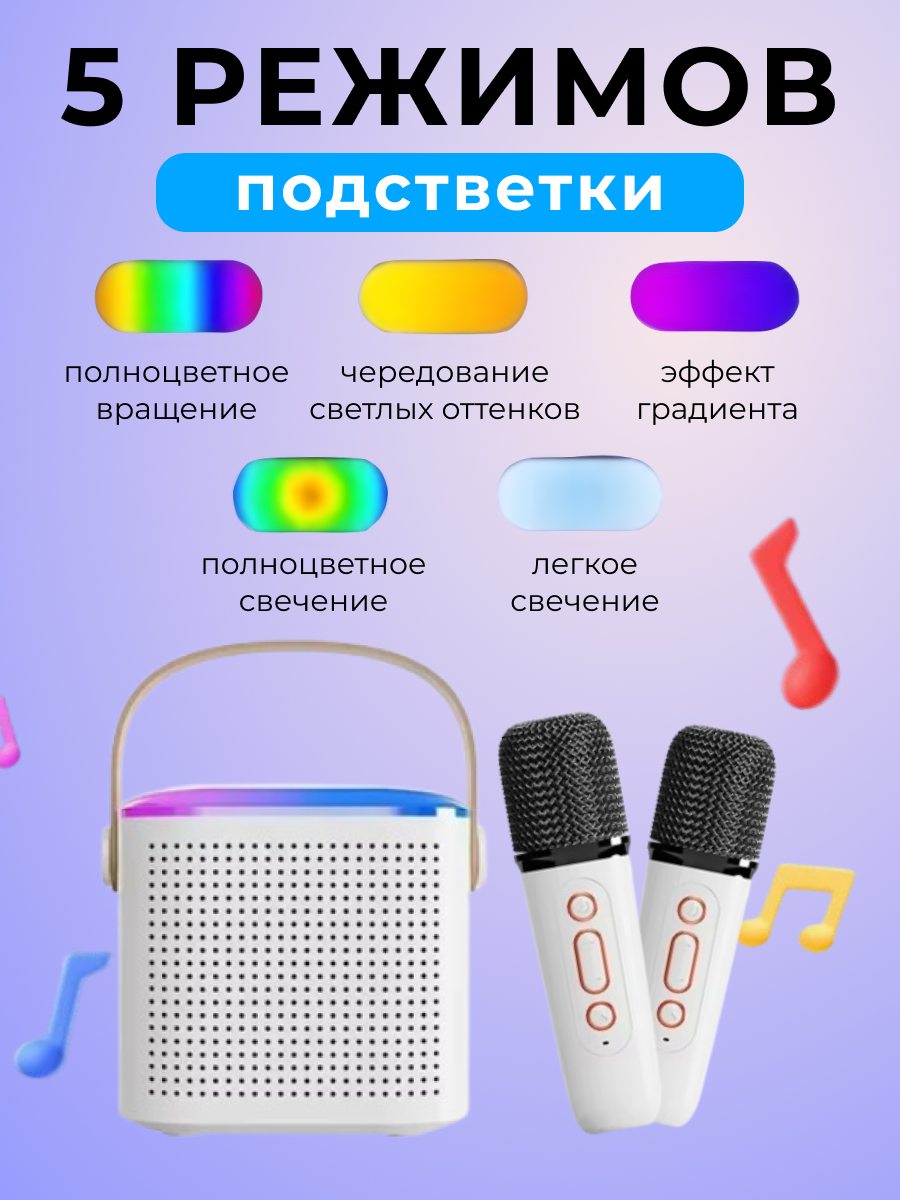 Детское беспроводное караоке с двумя микрофонами и колонкой, с RGB-подсветкой, цвет белый информация: