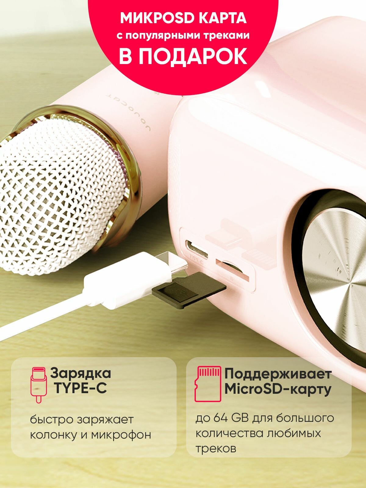 Микрофон детский беспроводной караоке с колонкой JOJOCAT 6 голосов розовый информация: