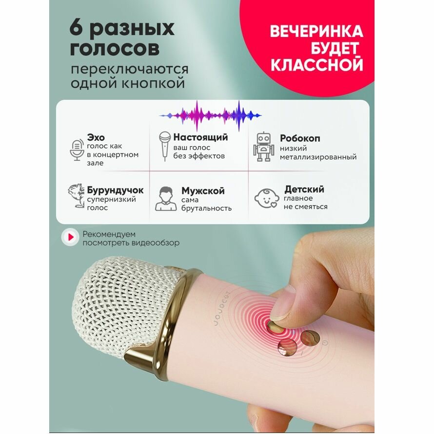 10 цен на Микрофон детский беспроводной караоке с колонкой JOJOCAT 6 голосов розовый