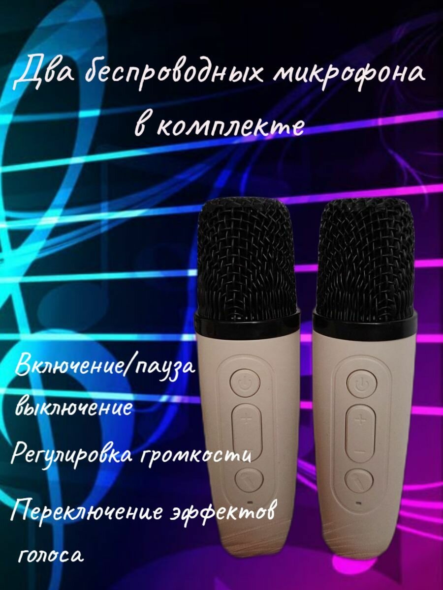 10 цен на Беспроводная караоке колонка с RGB подсветкой и двумя микрофонами в комплекте детская