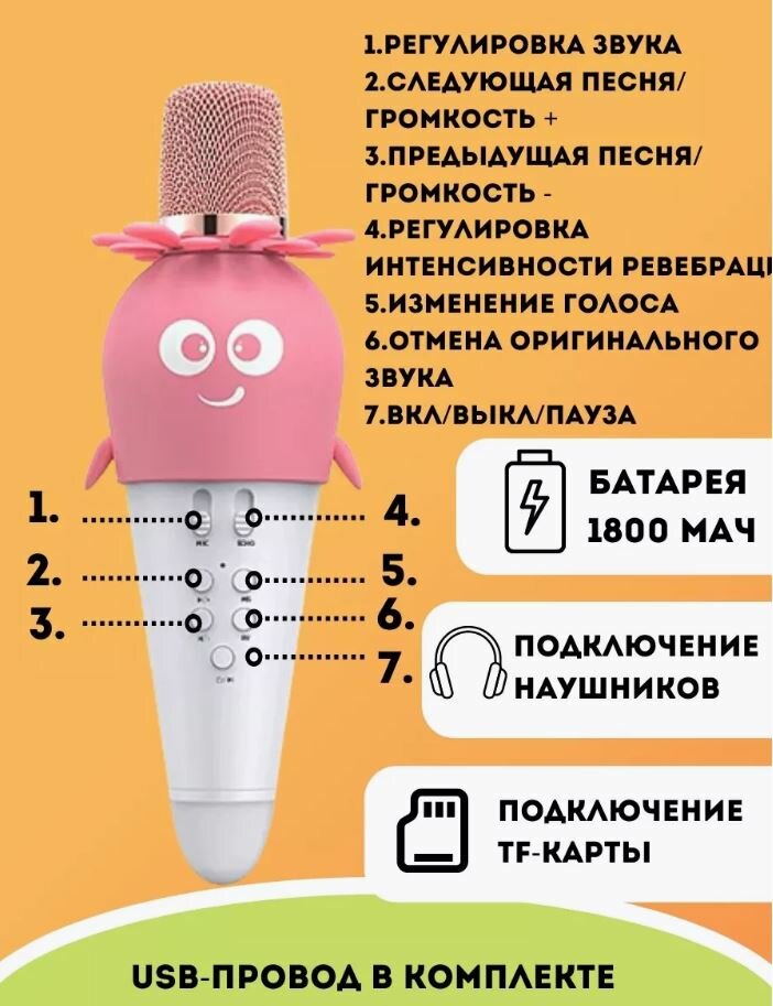 Микрофон NV_Store, детский, беспроводной, для караоке, Bluetooth, розовый информация: