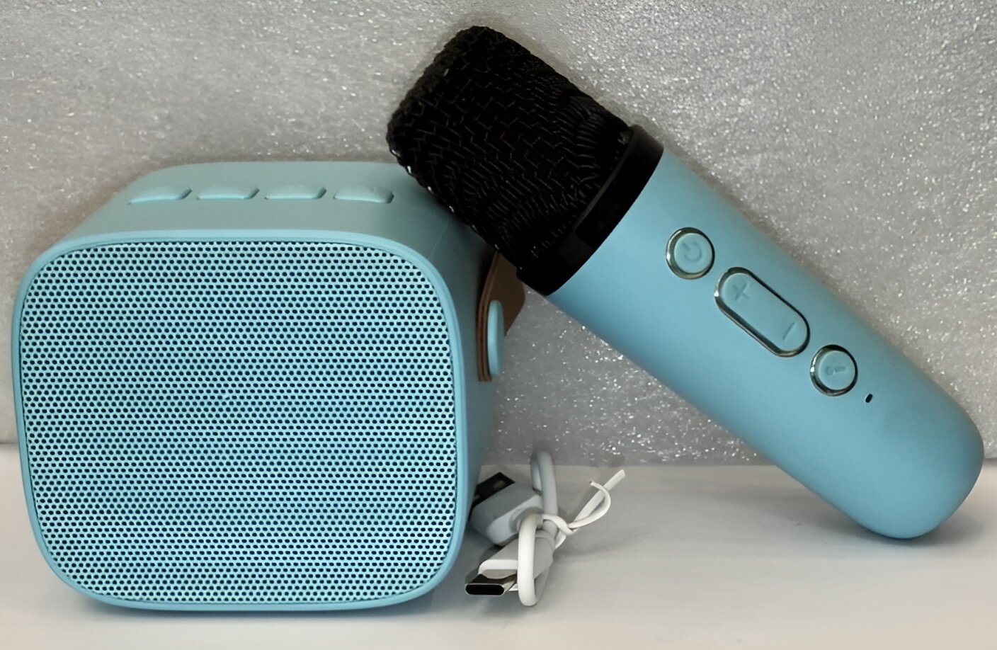 Детское беспроводное караоке с двумя микрофонами и колонкой, с RGB-подсветкой, цвет синий