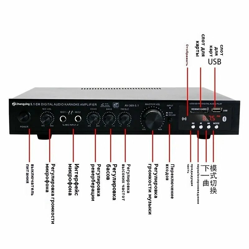 Усилитель звука мощностью, Bluetooth 5.0, AV-369bt HiFi, дистанционное управление, с функцией микрофонаSD RCA информация: