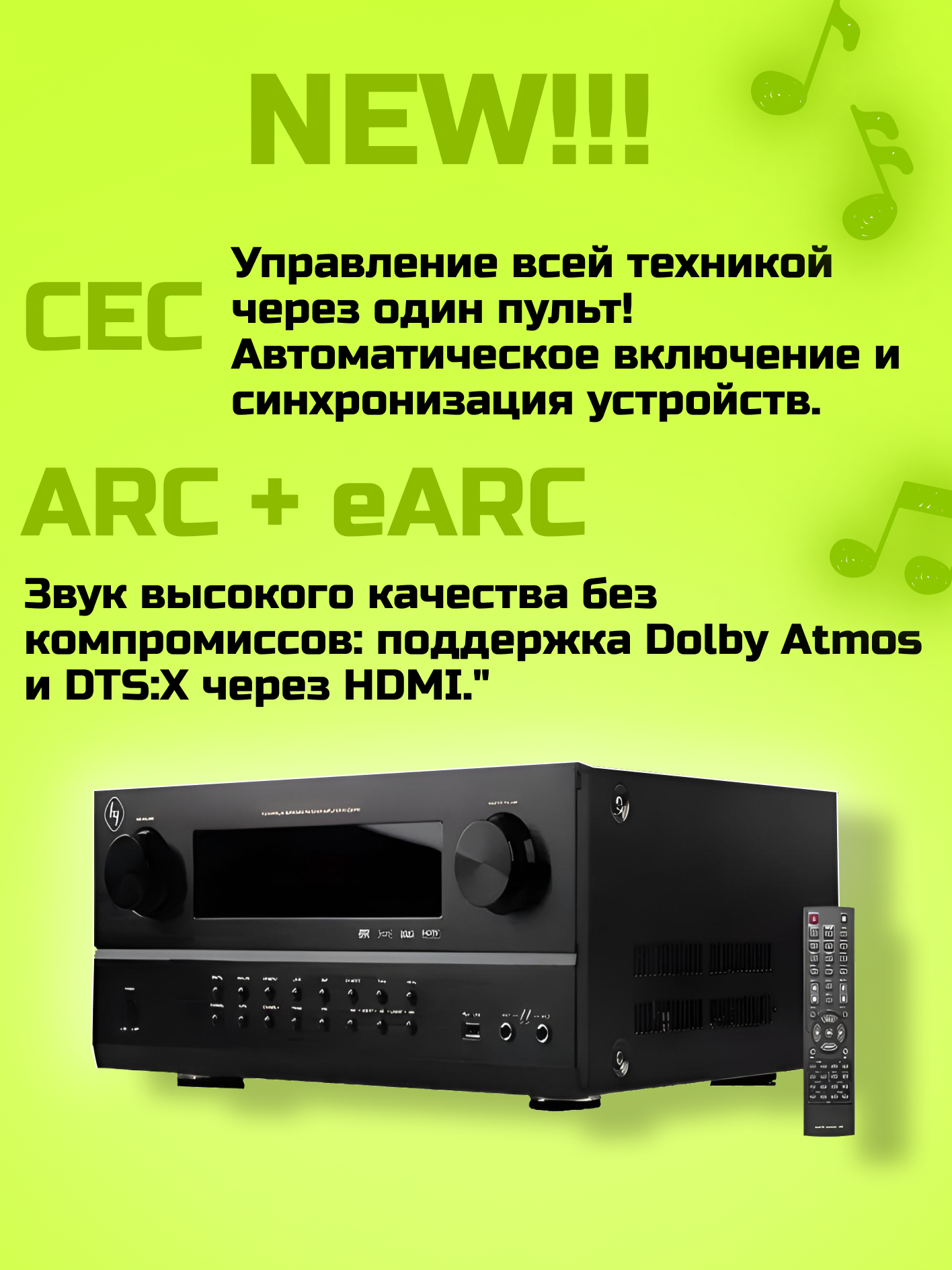 10 цен на AV-ресивер Hyper Sound 6480HD, мощность 480Вт, 5.2-канальный, поддержка 4k, черный