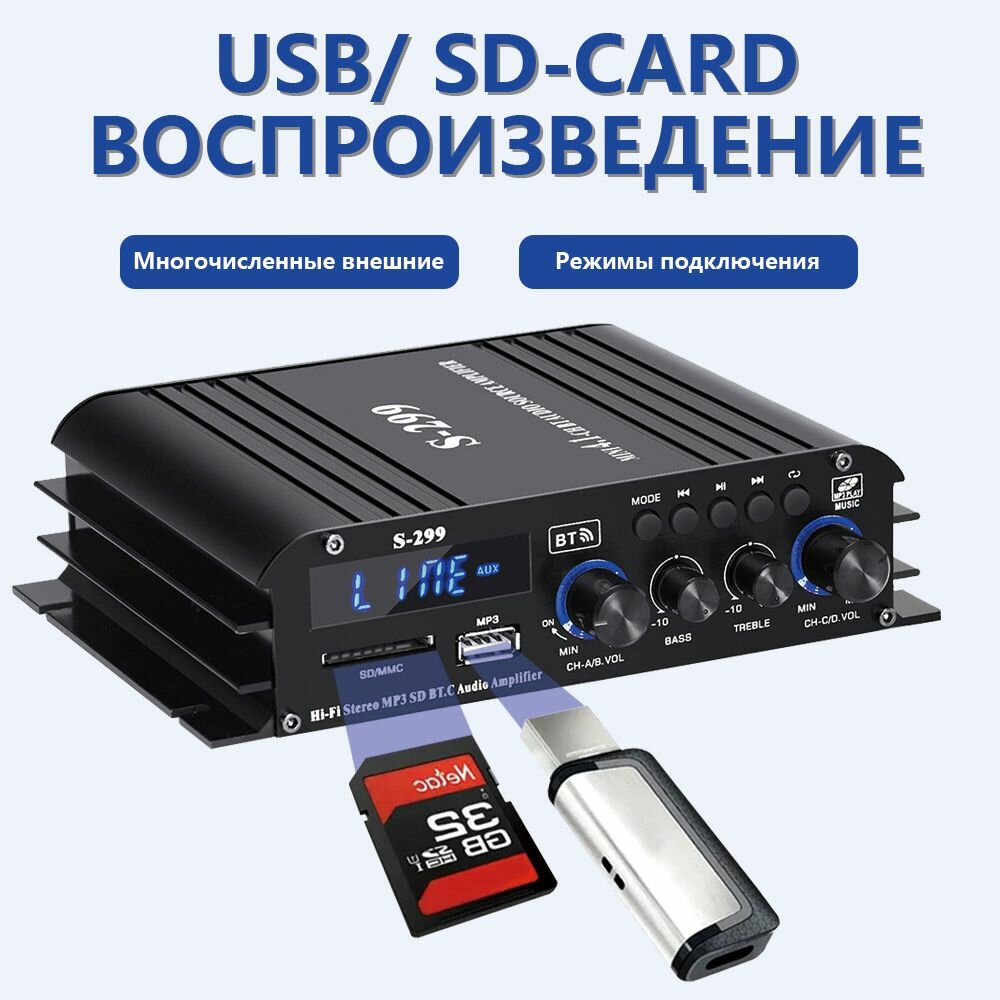 Yсилитель звука, S299, усилитель звука для колонок,2.1, блютуз5.3,800BT+800BT информация: