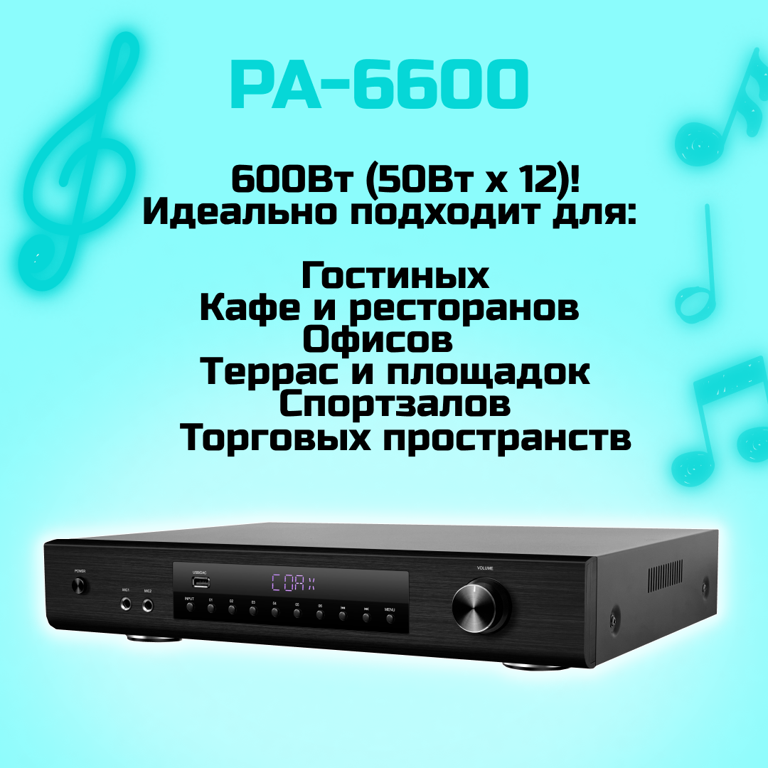 Усилитель звука Hyper Sound PA-6600, мощность 600Вт, 12каналов, FM-антенна, черный информация: