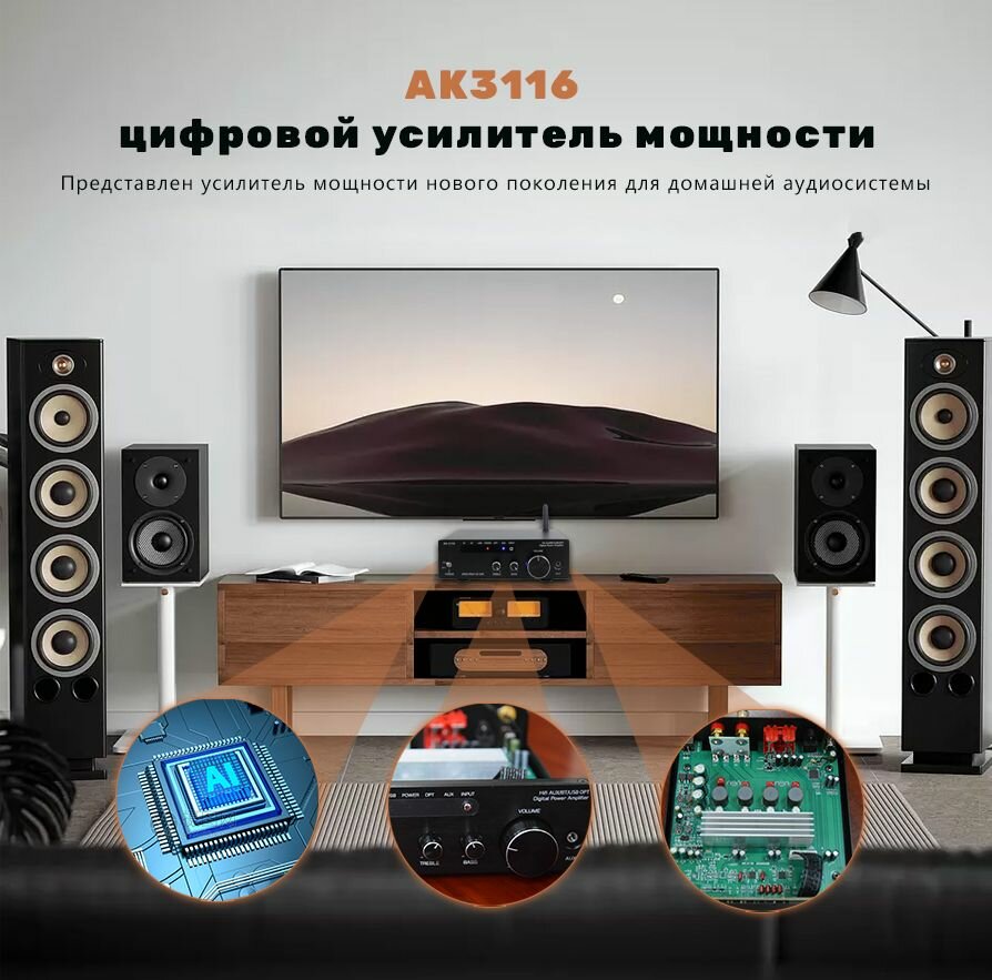 Отзывы на Интегральный усилитель 2.1, RC-AK3116, Bluetooth 5.3, Hi Fi усилитель звука, Поддержка ввода оптоволокна1500BT+1500 BT