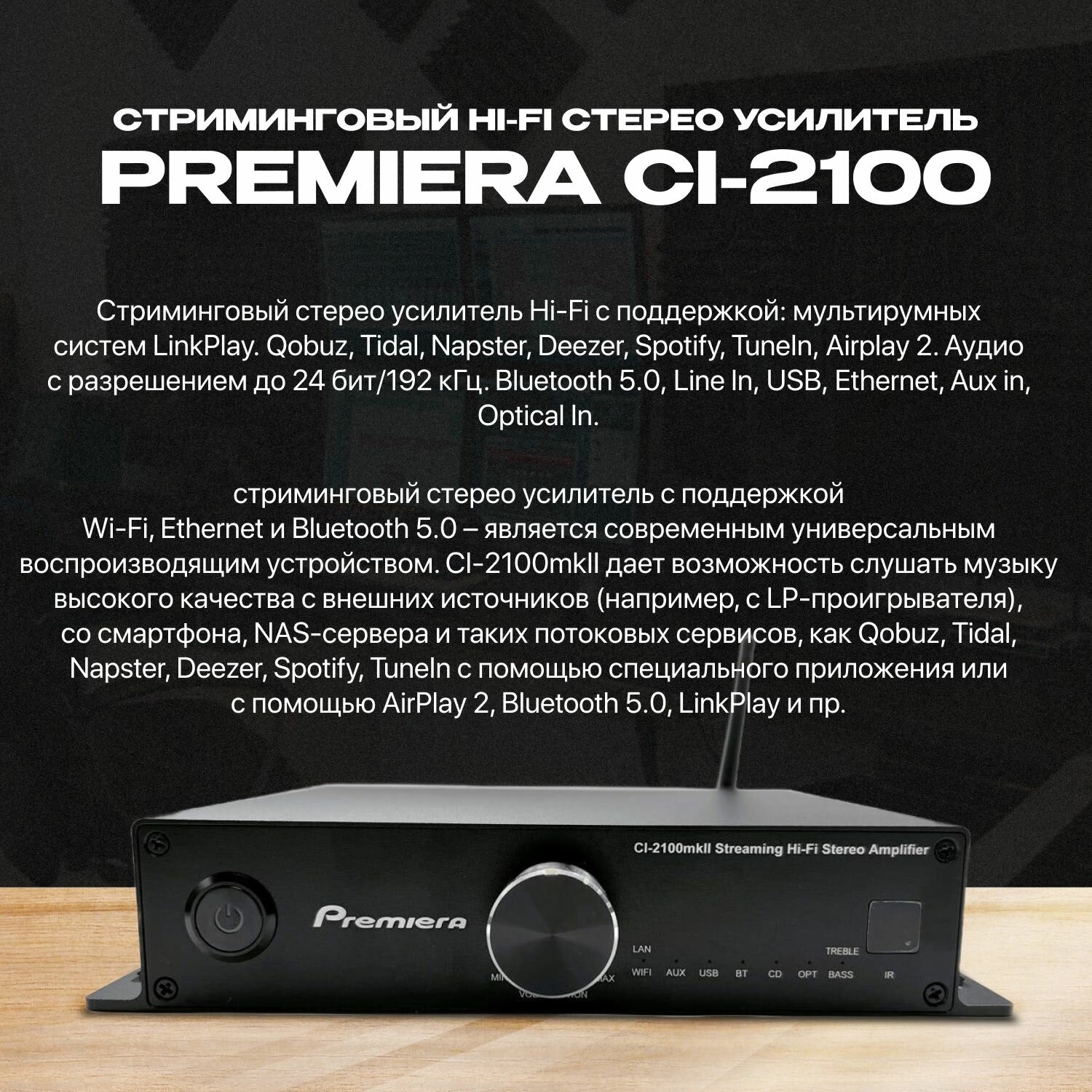 Усилитель стриминговый Premiera CI-2100 MKII, с мультирумной связью, Hi-Fi, аудио 24бит/192кГц информация: