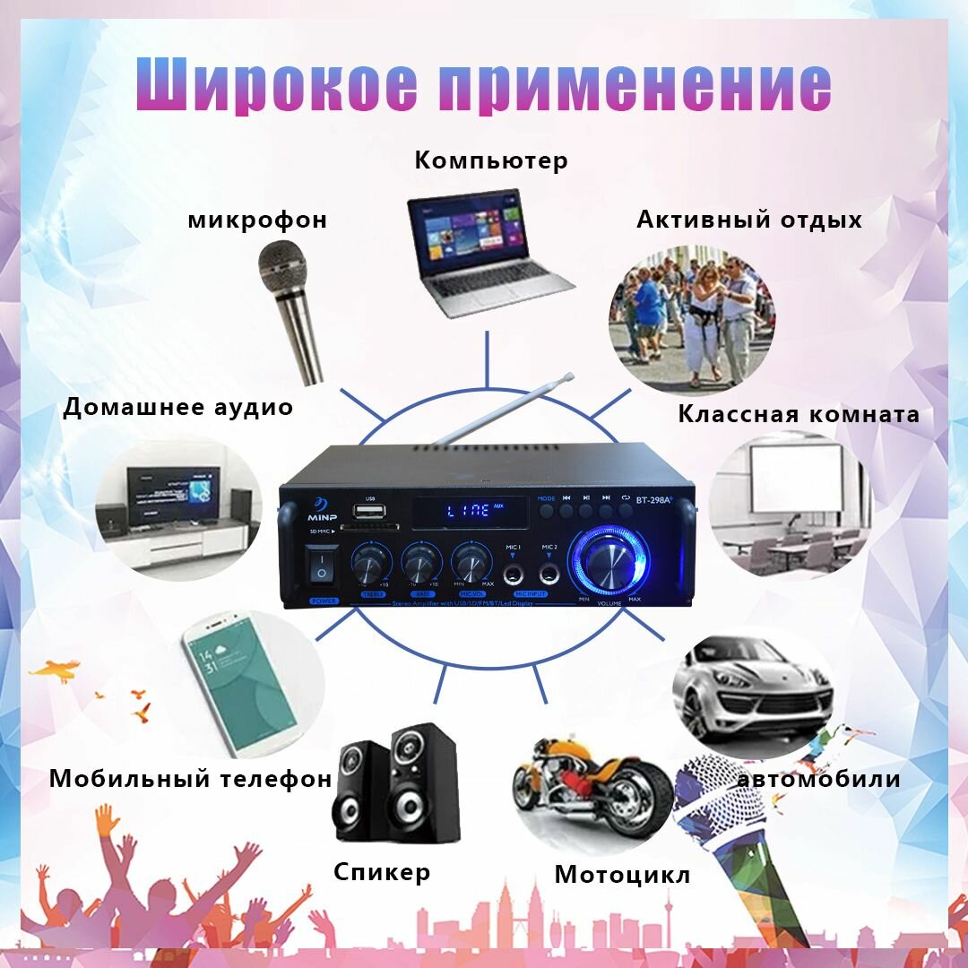 Отзывы на Усилитель звука динамика, 298a+, усилитель динамика, домашний источник питания, Bluetooth 5.3FM/USB/RCA, 500BT(поддержка активного подключения сабвуфера)