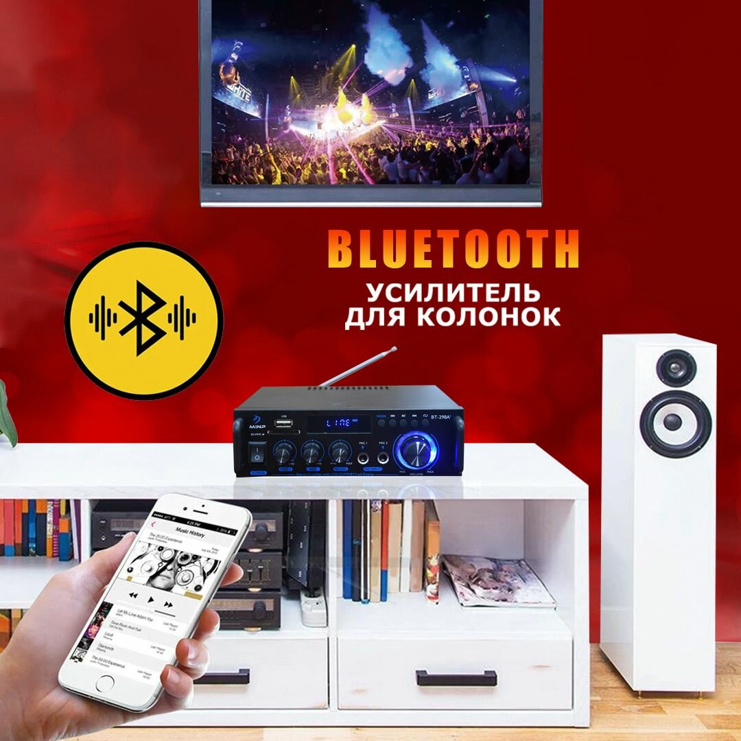 Отзывы на Усилитель звука для колонок, усилитель для колонок298A+ HiFI с Bluetooth 5.3, FM, 50 Вт+50 Вт поддержка активного сабвуфера