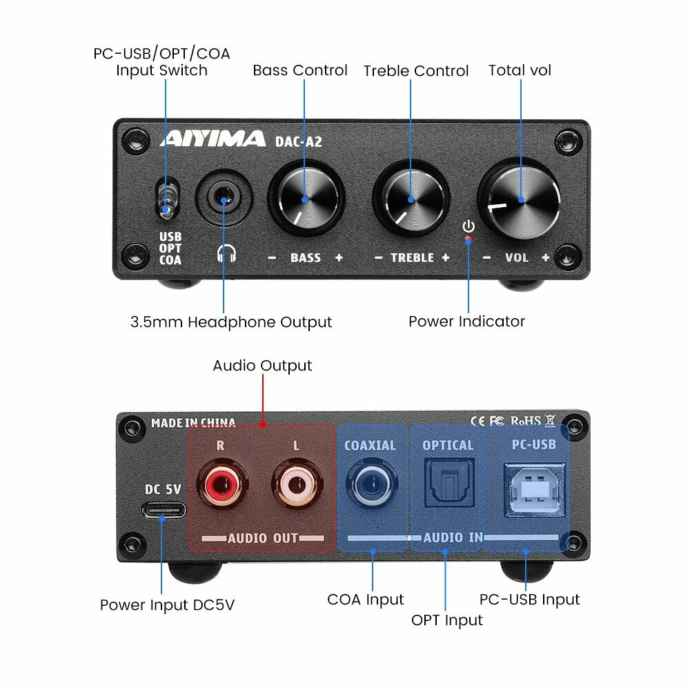 AIYIMA Audio DAC A2 Цифро-аналоговый преобразователь, Черный информация: