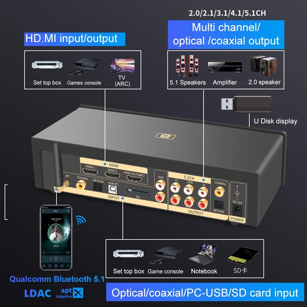 DA720 5.1CH Беспроводной Bluetooth Аудио Декодер, EU Adapter