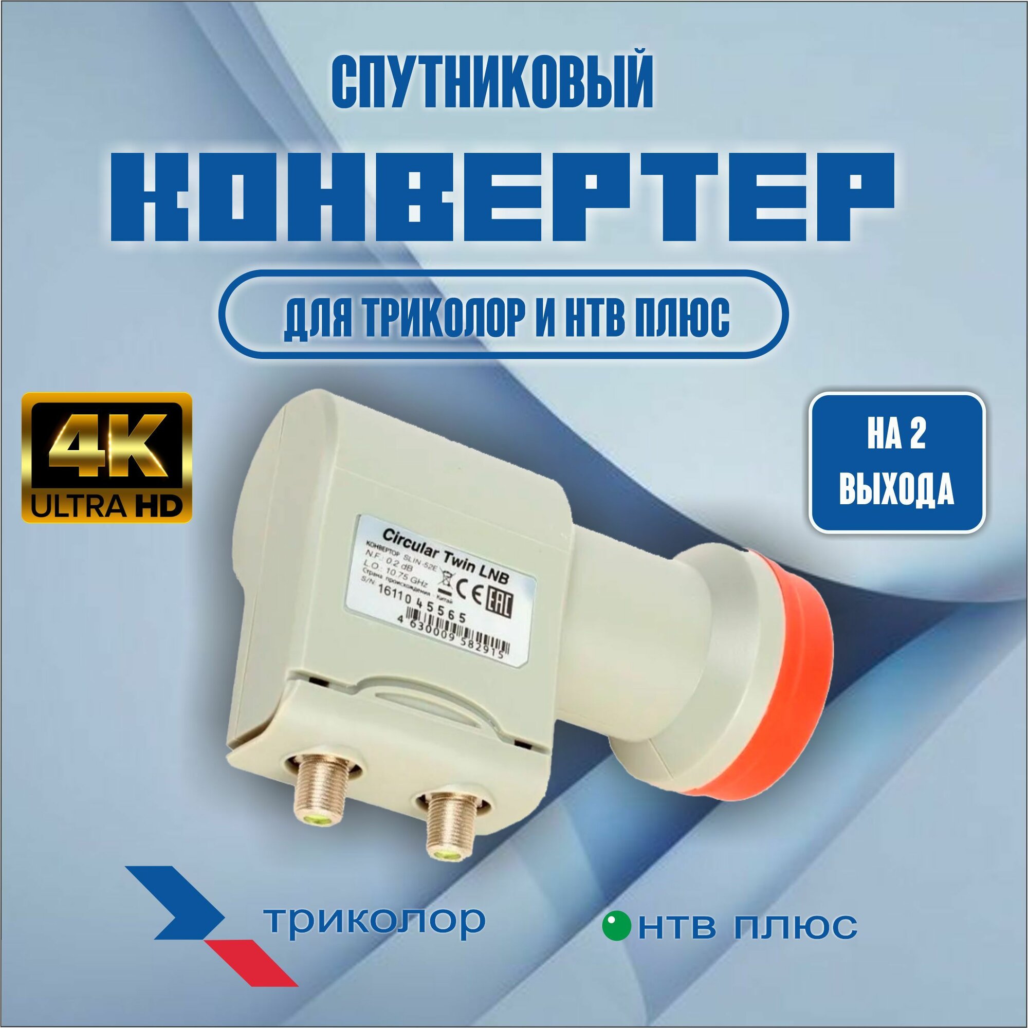 Конвертор спутниковый на 2 выхода, twin круговой поляризации, (для Триколор ТВ и НТВ плюс) информация:
