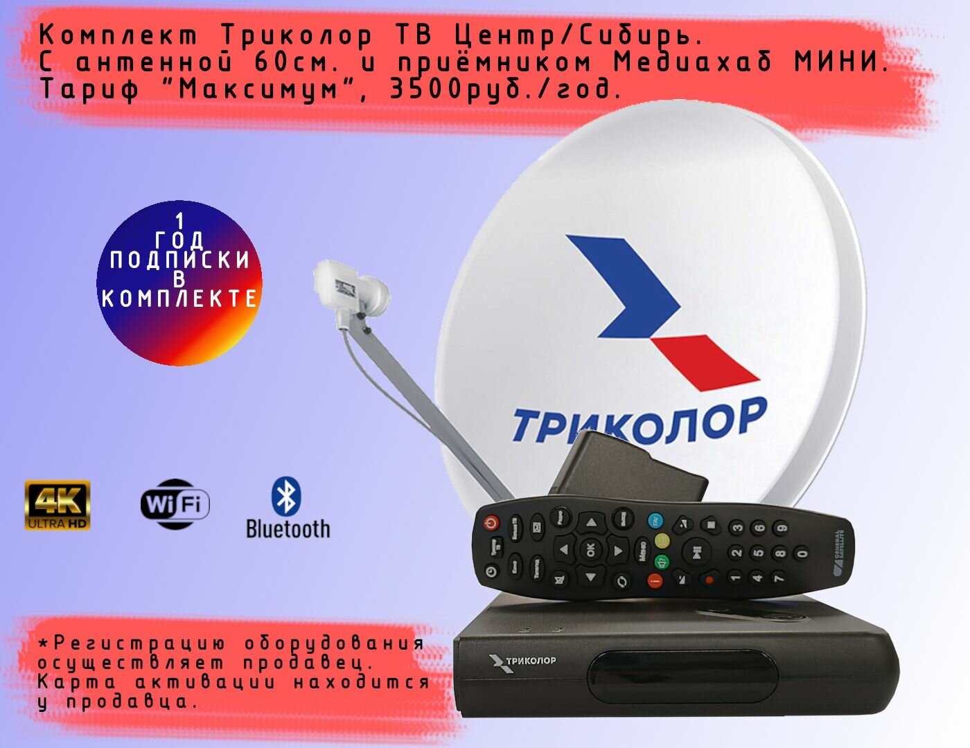 Комплект спутникового телевидения Триколор с приёмником GS Медиахаб мини+подписка 365 дней (Центр/Сибирь, Максимум, 3500 руб./год) информация:
