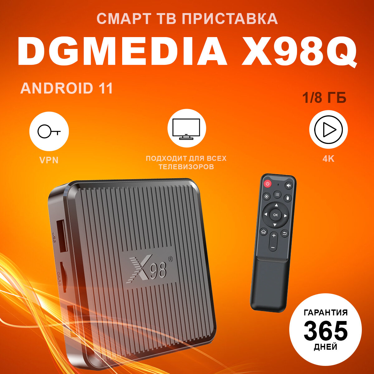 Смарт ТВ приставка DGMedia X98Q, Андроид медиаплеер 1/8 Гб, Wi-Fi, 4K, Amlogic S905W2 информация: