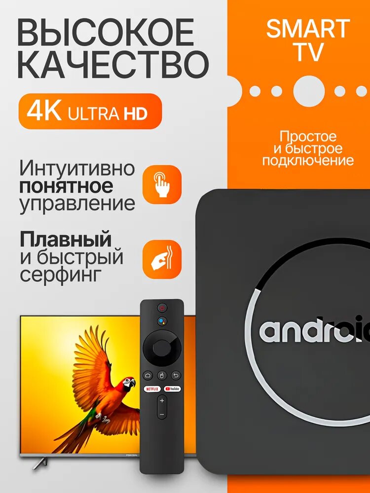 ТВ приставка Android TV, 8 ГБ/128 ГБ, Wi-Fi, Bluetooth, черный информация: