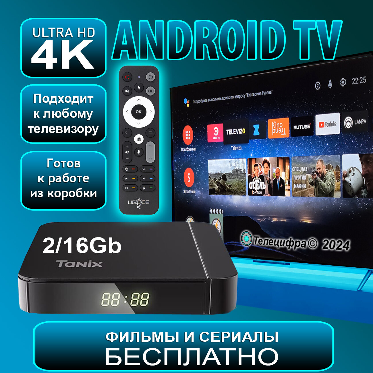 Tanix W2 2/16 + UGOOS UR02. Медиаплеерс прошивкой SlimBox ATV 2/16 4K /Android 11/WI-FI 2.4&5G + аэромышь информация: