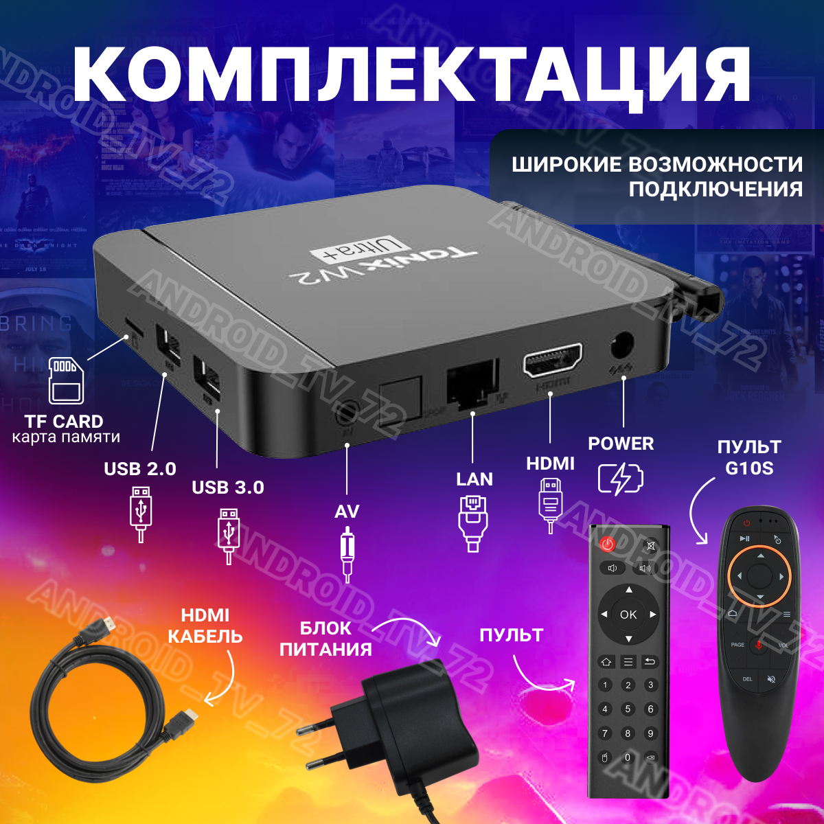 Прошитая Tanix W2 Ultra Wi-Fi 4GB/32GB S905W2 смарт ТВ приставка Android 11+ Аэропульт Vontar G10s информация: