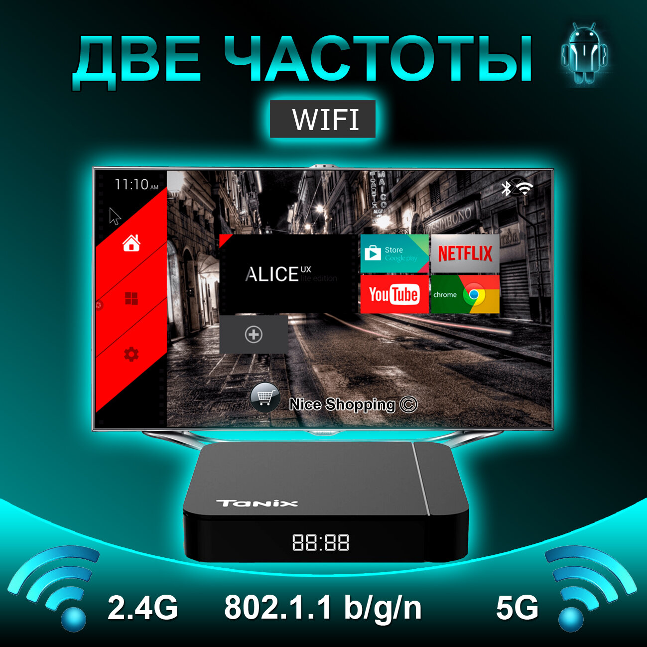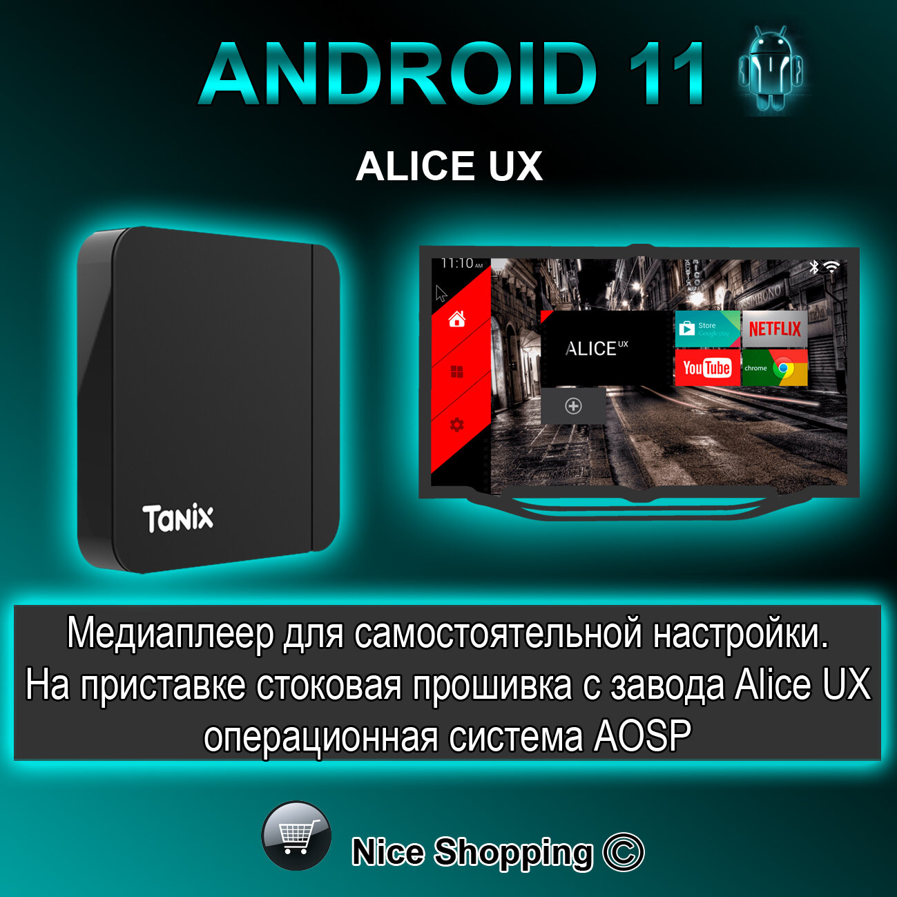 Tanix W2 4/32 AOSP Alice UX Смарт приставка для телевизора 4/32 4K UHD. Android 11, WI-FI 2.4&5G информация: