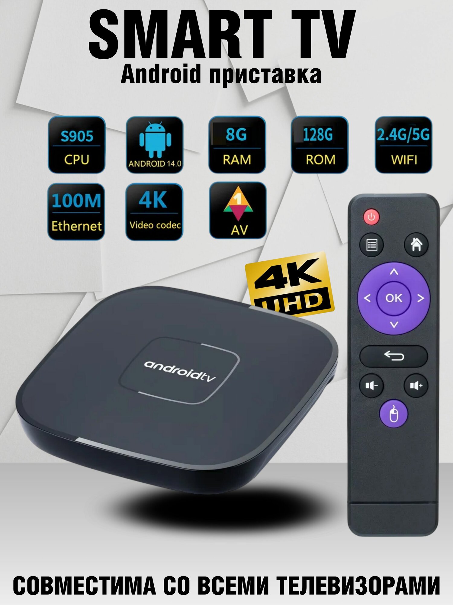 10 цен на Android 14 TV приставка с пультом управления, 4K ULTRA HD SET-TOP box, 5G, 8Gb+128Gb