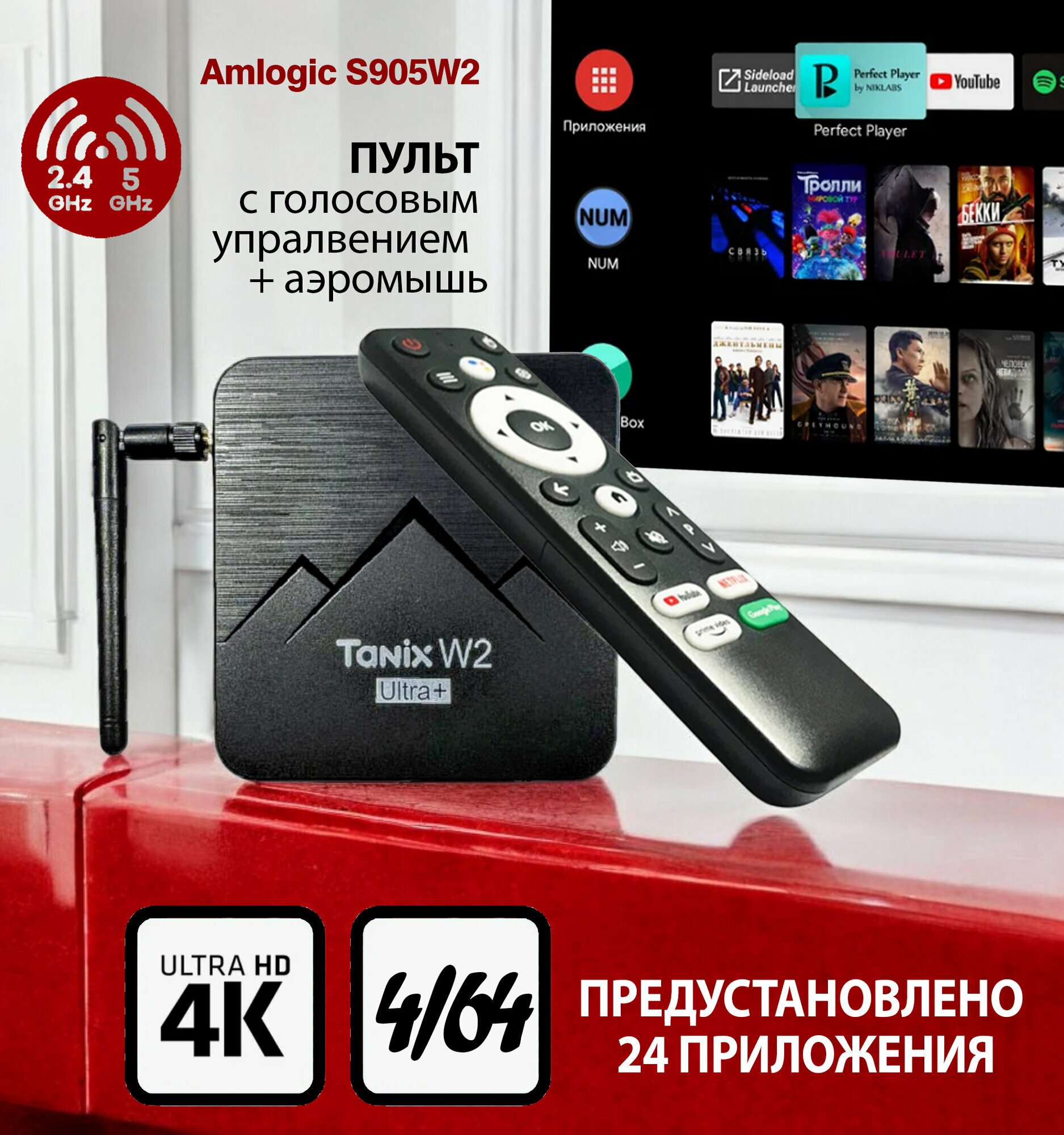 Смарт ТВ приставка Tanix w2 4/64 Ultra PLUS + ATV ROOT права + 24 приложения бесплатно тв и фильмы аэропульт голос мышка информация: