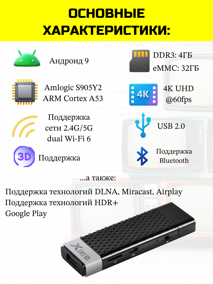 Смарт стик ТВ приставка X96S Dolphin информация: