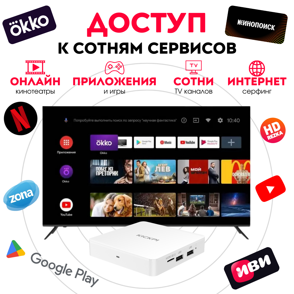 10 цен на Смарт ТВ приставка KICKPI KP1 2/32 на сертифицированном Android TV 11