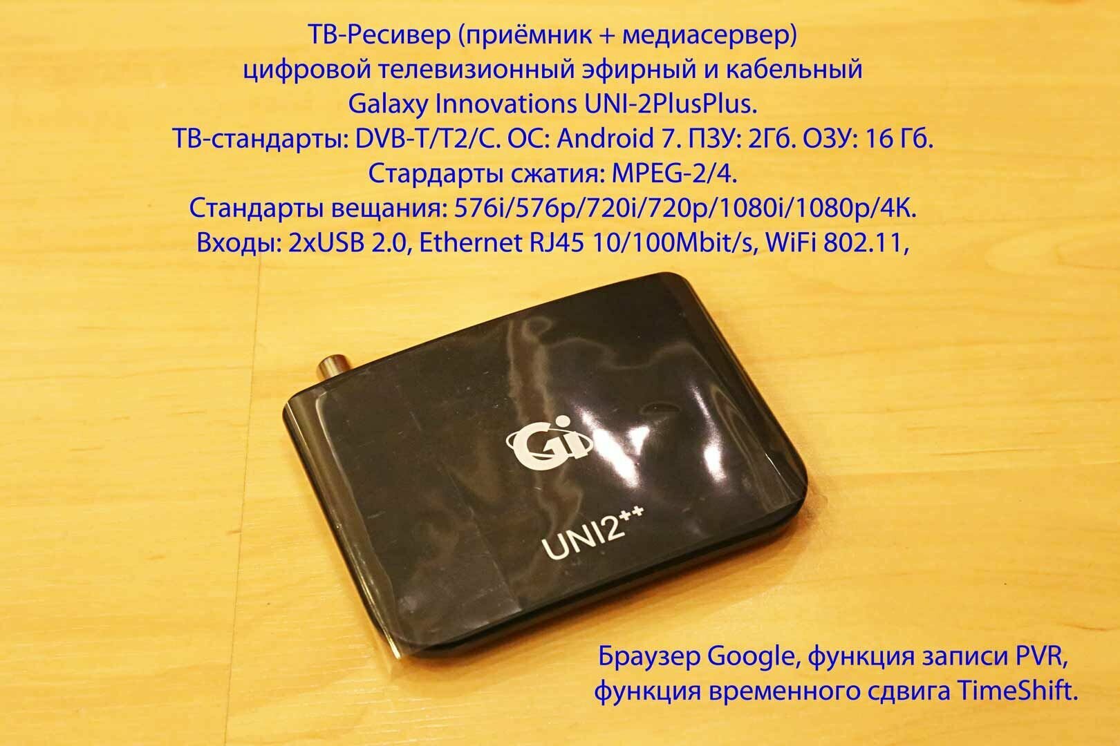 ТВ-Ресивер (приёмник + медиасервер) цифровой телевизионный эфирный и кабельный GI UNI-2PlusPlus информация: