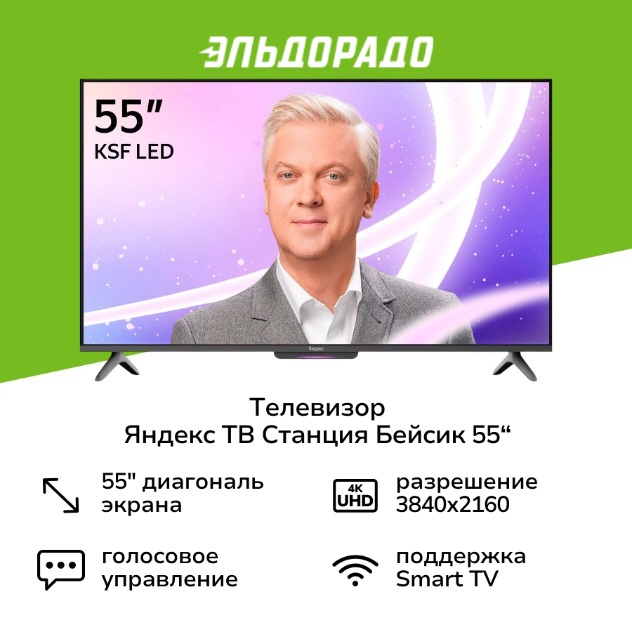Телевизор Яндекс ТВ Станция Бейсик с Алисой на YaGPT 55“ 4K UHD, LED информация: