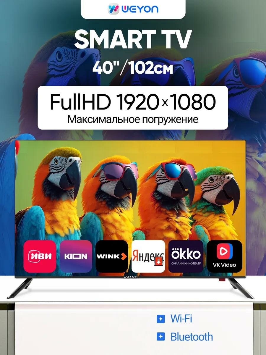 10 цен на Телевизор WEYON D-LED, диагональ 40", Full HD, Bluetooth, Wi-F