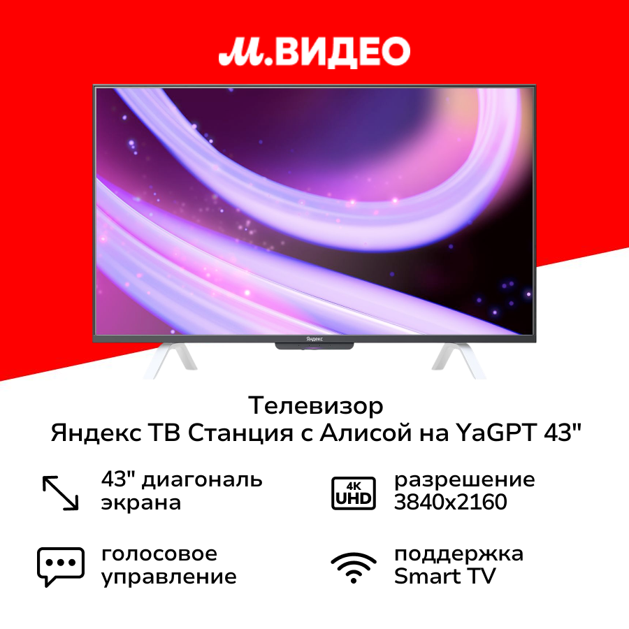 Телевизор Яндекс ТВ Станция с Алисой 43’’ на YandexGPT QLED 4K UHD информация: