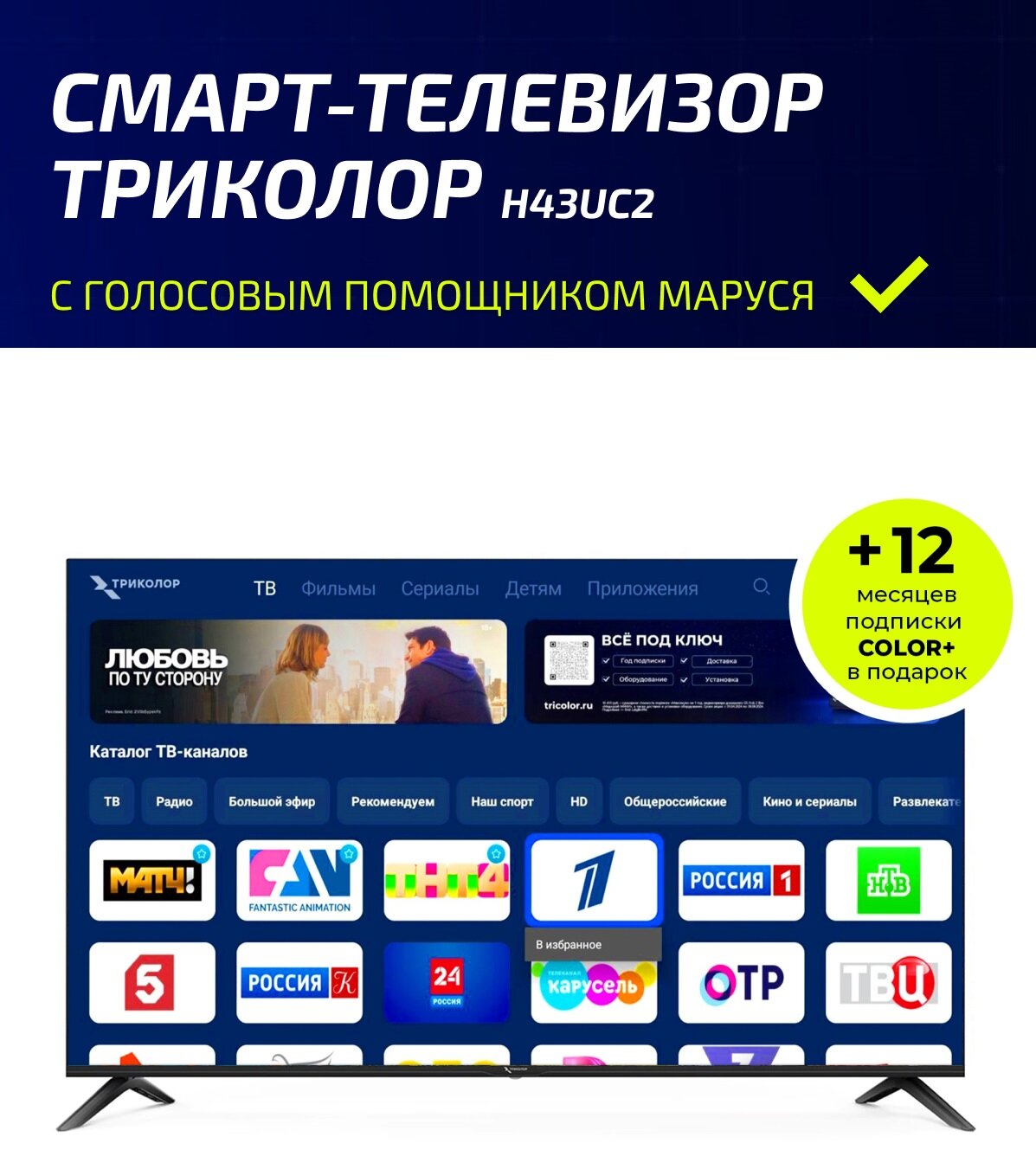 Телевизор Триколор H43UC2 SMART TV, Ultra HD, с голосовым помощником Маруся, 43" информация: