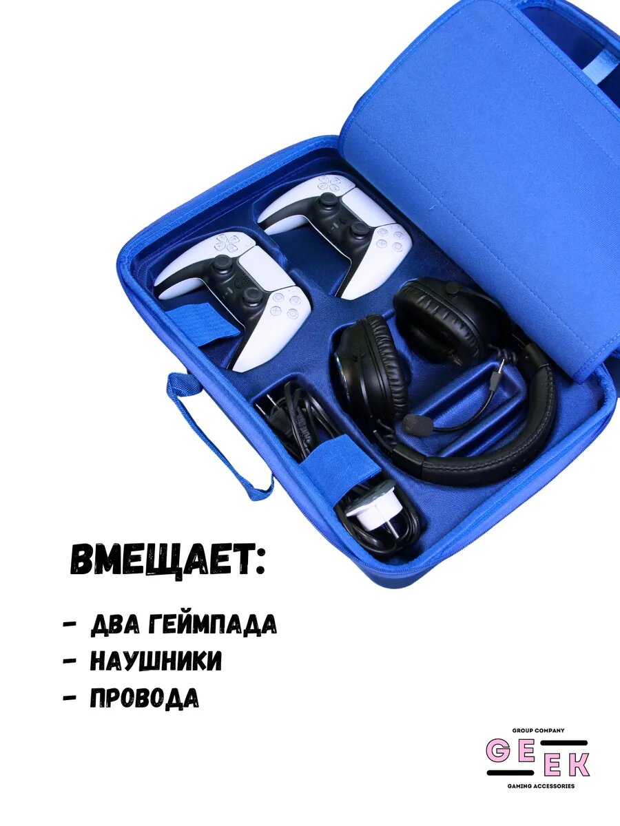10 цен на Cумка PS5 GEEK GROUP, для PlayStation 5/SLIM, пластик, металл и текстиль, синий и белый