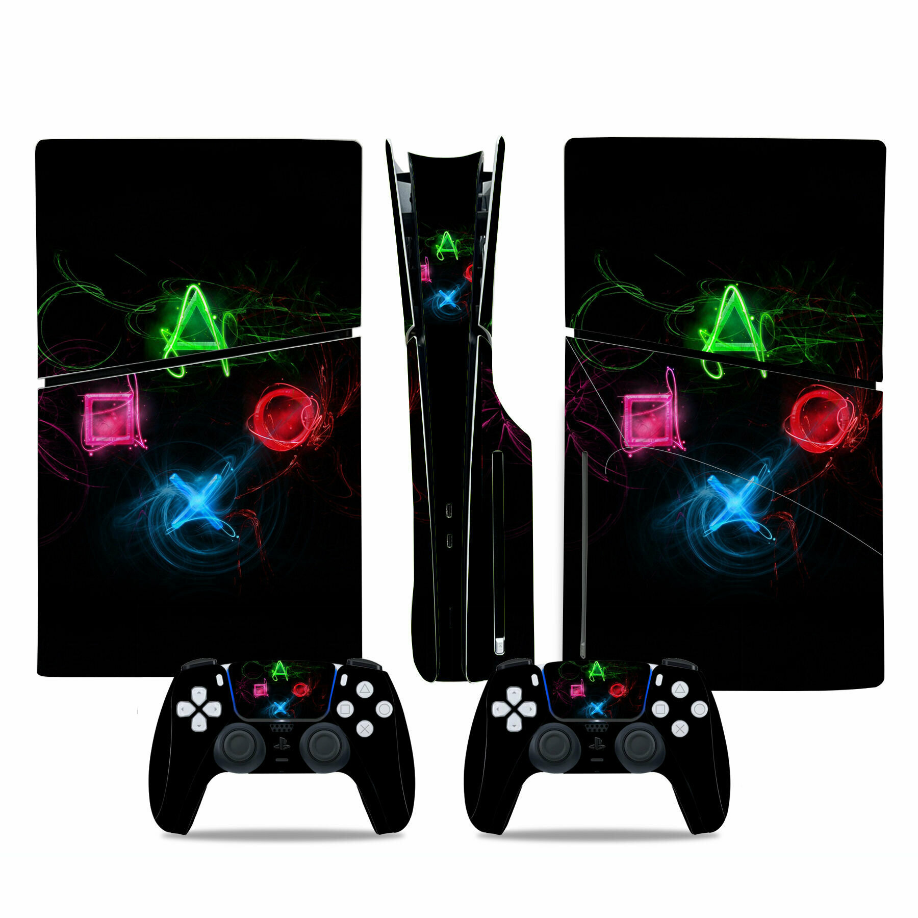 10 цен на Наклейка PS5 Slim "Фигуры Sony" виниловая защитная на игровую консоль PlayStation 5 Slim Disk Edition полный комплект