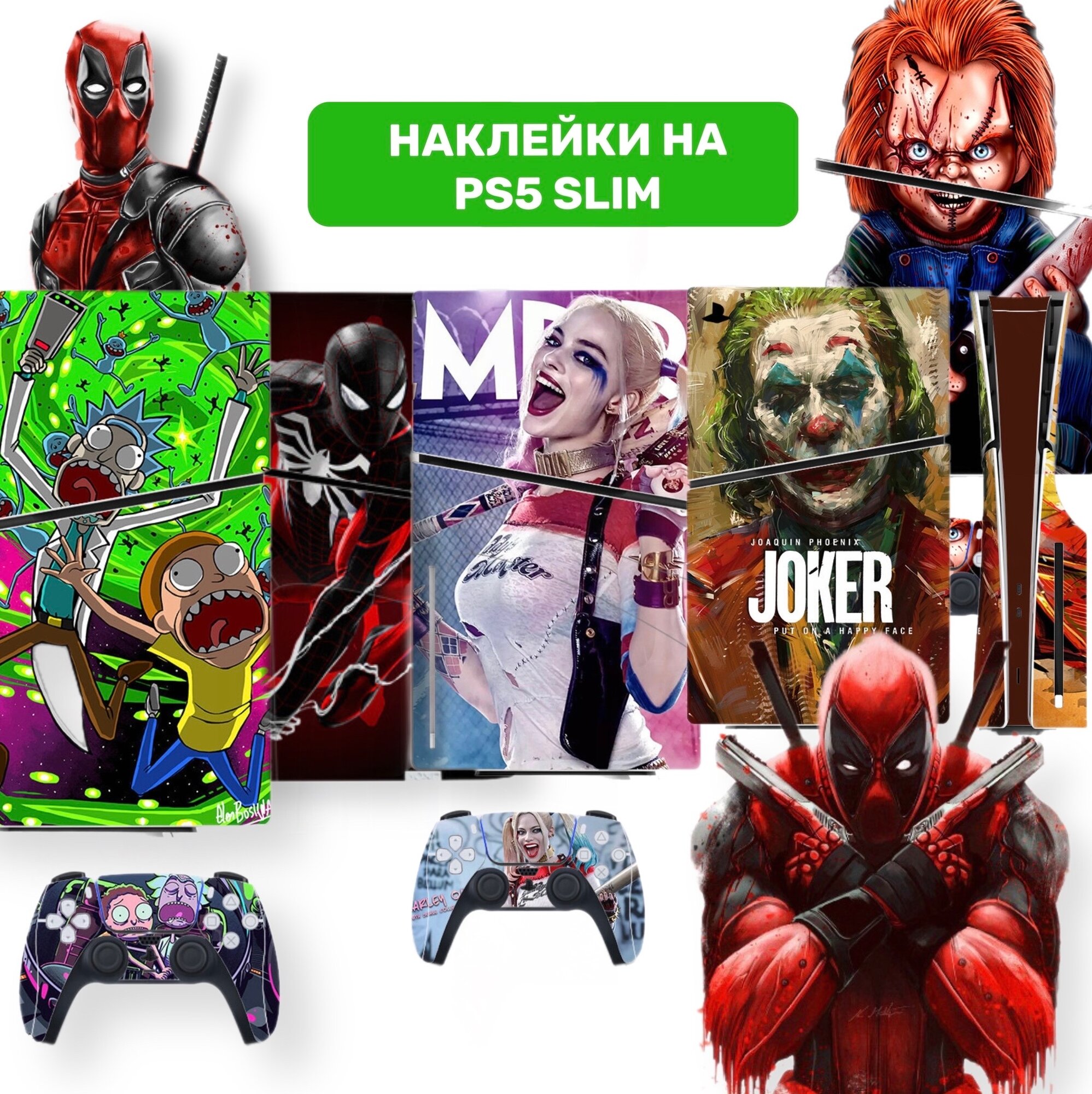 Наклейка для консоли PS5 SLIM EDITION Joker разноцветный Защитная пленка на консоль и контроллеры Sony PlayStation 5 slim 1 590 ₽