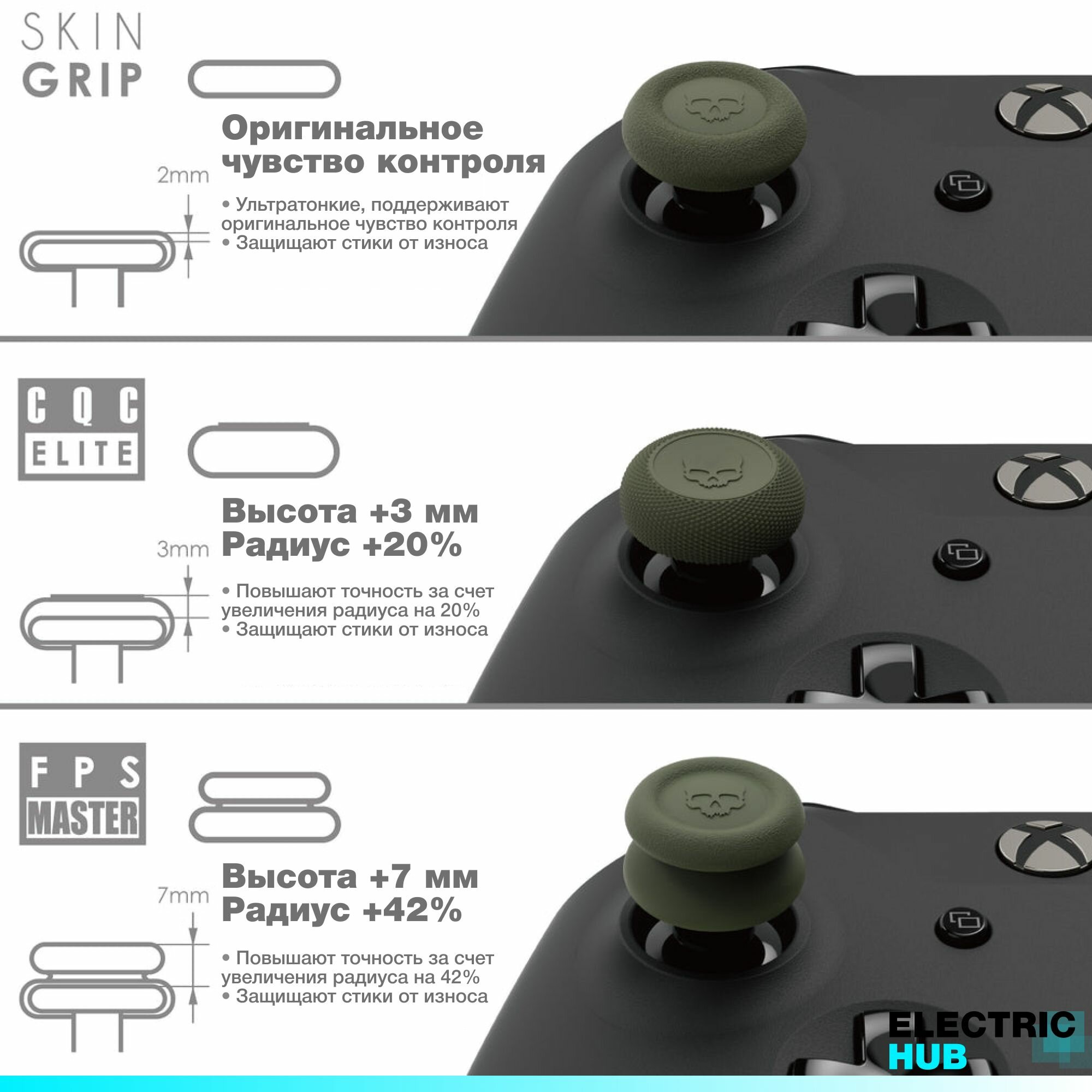 Накладки на стики "Convex Thumb Grip" Skull & Co для Xbox One / Series / Elite, 4 штуки, цвет Хаки (OD Green) 650 ₽