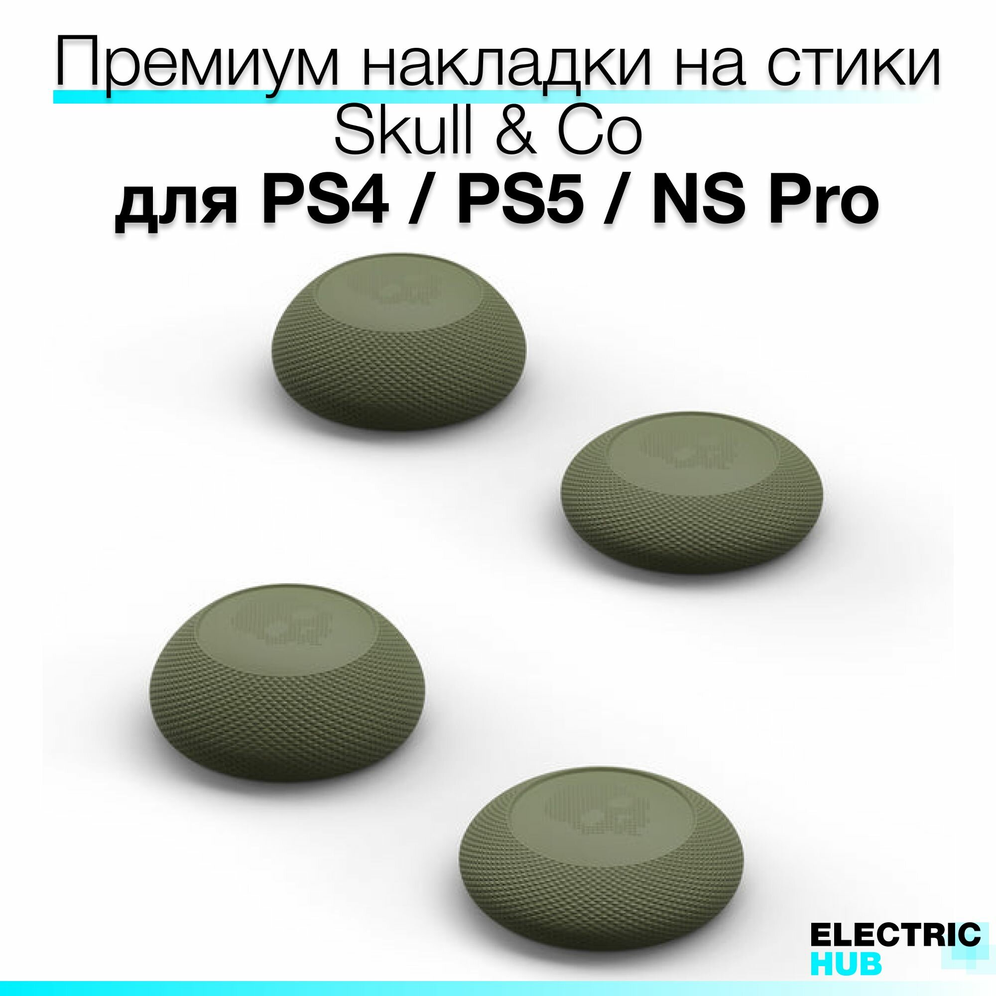 Накладки на стики "Convex Thumb Grip" Skull & Co для PlayStation 4 (DualShock 4) / 5 (DualSense), Nintendo Switch PRO (Controller), 4 штуки, цвет Хаки (OD Green) информация: