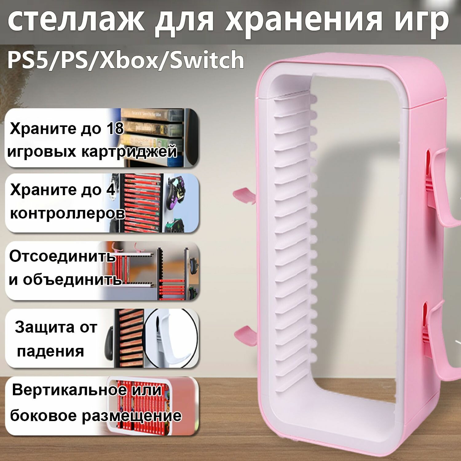 Отзывы на Универсальный футляр для хранения дисков с видеоиграми, 18 шт. Подставка с 4 контроллерами (белый/розовый)