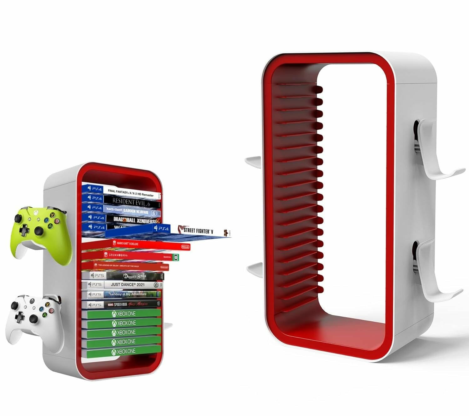 Отзывы на Универсальный футляр для хранения дисков с видеоиграми, 18 шт. Стенд с 4 контроллерами (красный/белый)