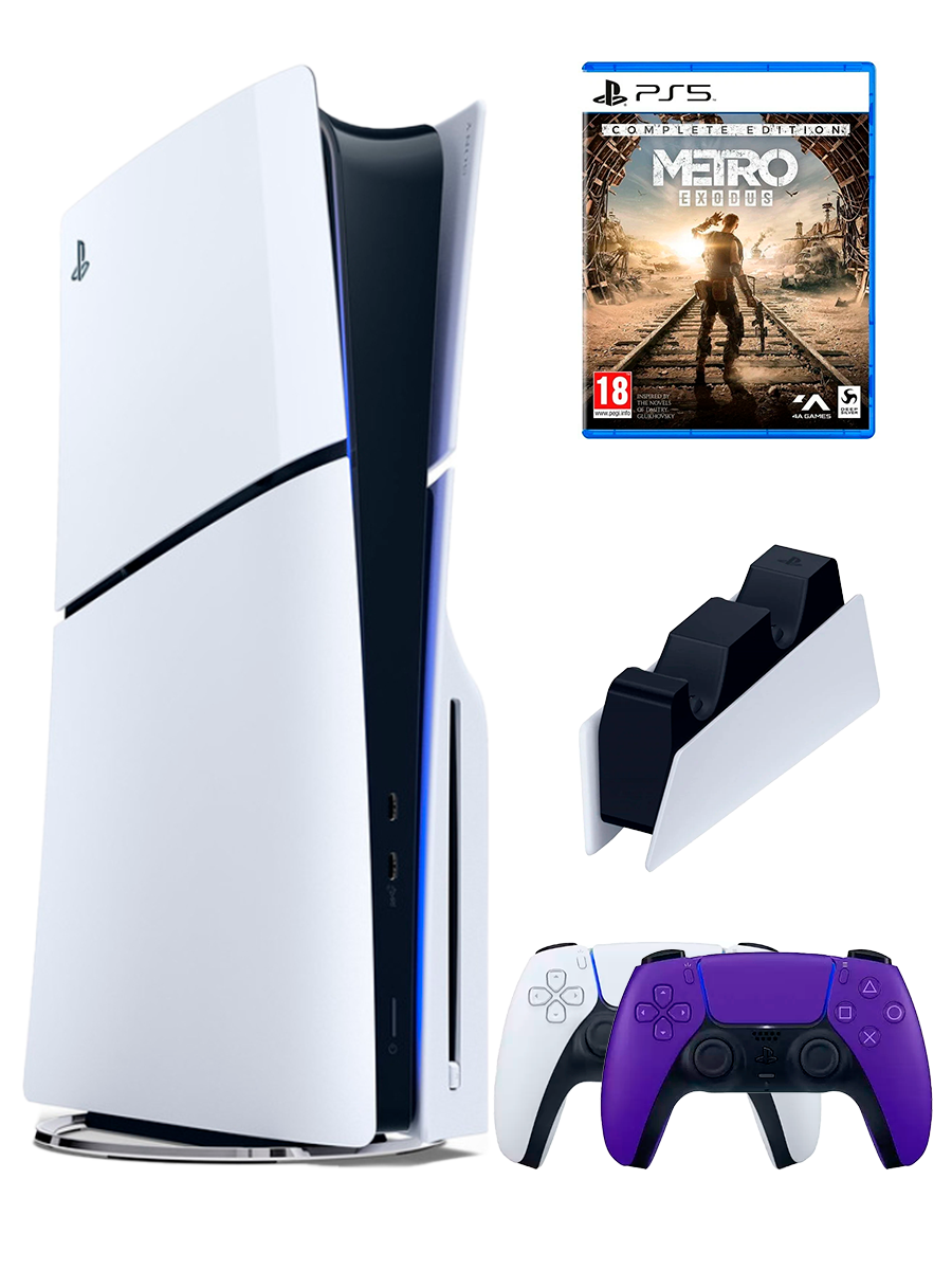 10 цен на PS5 (ПС5) Игровая приставка Sony PlayStation 5 Slim disc + 2-й геймпад(фиолетовый) + зарядное + игра MetroEx