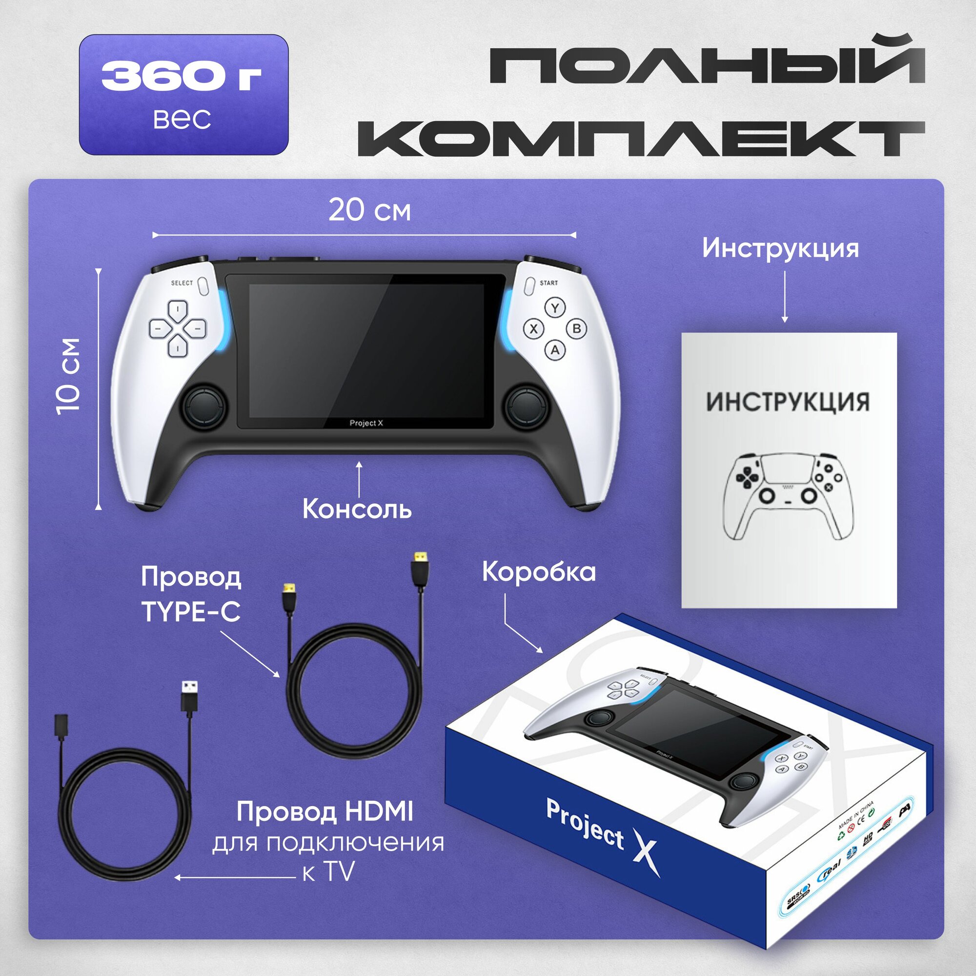 Портативная игровая консоль Project X 4,3 дюйма , встроенные 40000 игр, 128 гб детская информация:
