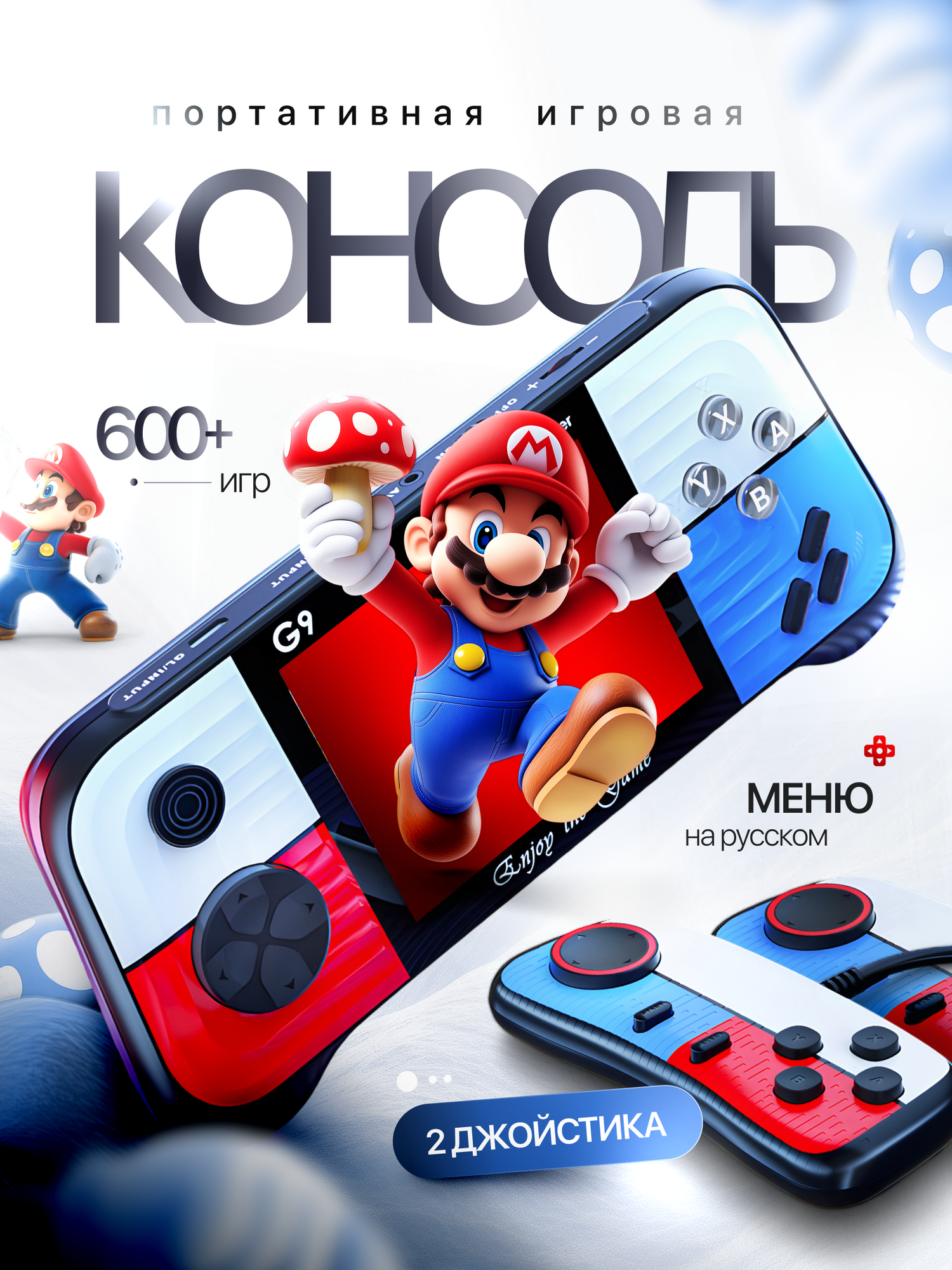 Игровая приставка G9 + геймпад в комплекте, 666 игр, 6 ч работы, экран 3 дюйма", 1020 мА/ч, AV-выход информация:
