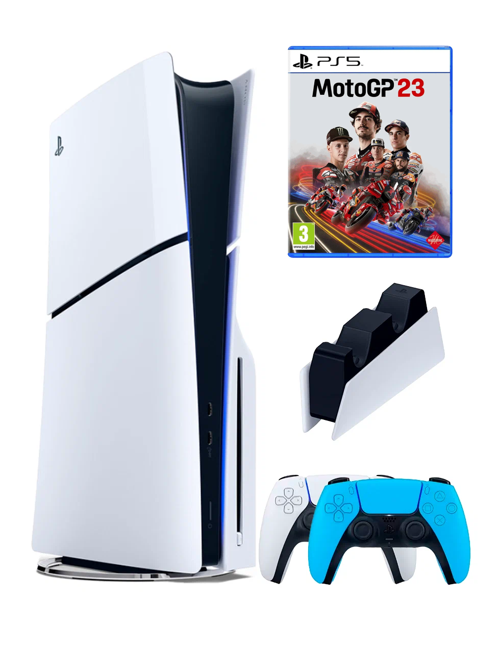 10 цен на PS5 (ПС5) Игровая приставка Sony PlayStation 5 Slim disk+2-й геймпад(голубой)+зарядное+ MotoGP 23, 1000 ГБ