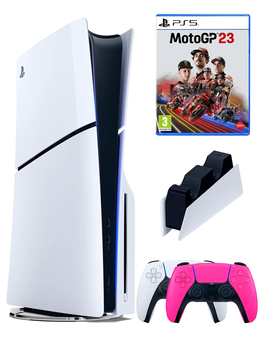10 цен на PS5 (ПС5) Игровая приставка Sony PlayStation 5 Slim disk+2-й геймпад(розовый)+зарядное+ MotoGP 23, 1000 ГБ