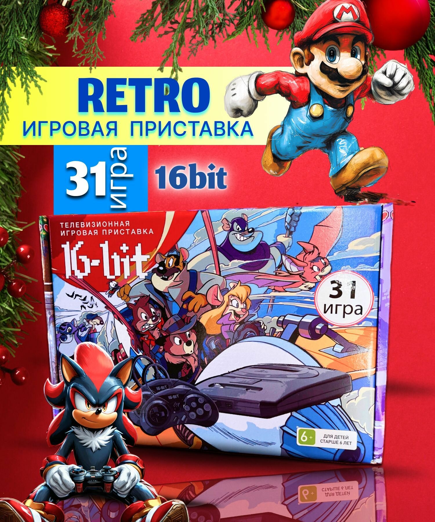 Ретро игровая приставка SEGA 16bit Classic Chip & Dale (Чип и Дейл), 31 встроенная игра, 2 турбо джойстика информация:
