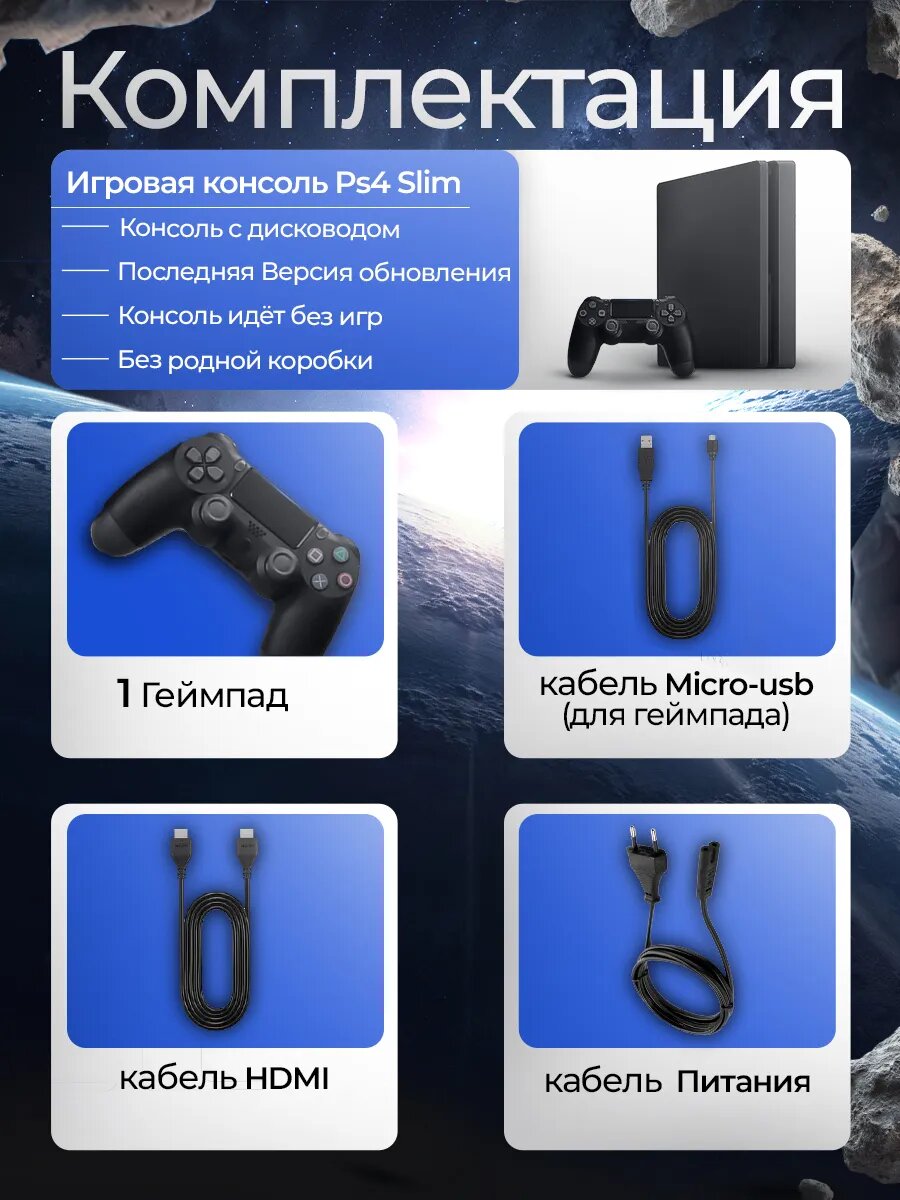 Игровая консоль PS4 Slim (500gb), 1 геймпад, черный, стационарная информация: