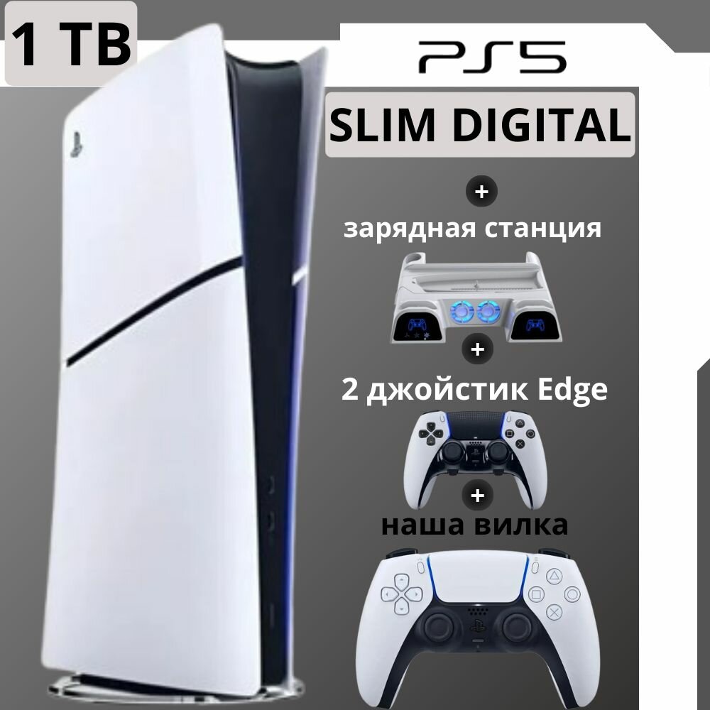 10 цен на Игровая приставка PS5 Slim Digital Edition 1TB + зарядка и 2-й джойстик Edge