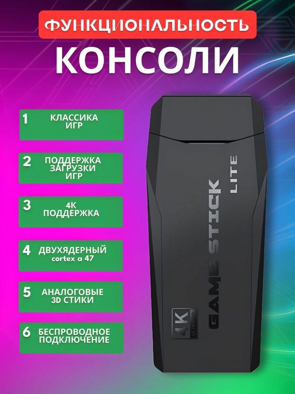 Игровая консоль приставка для телевизора Game Stick Lite/ ТВ/ TV приставка, 20 000 игр